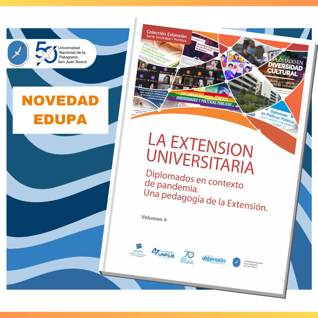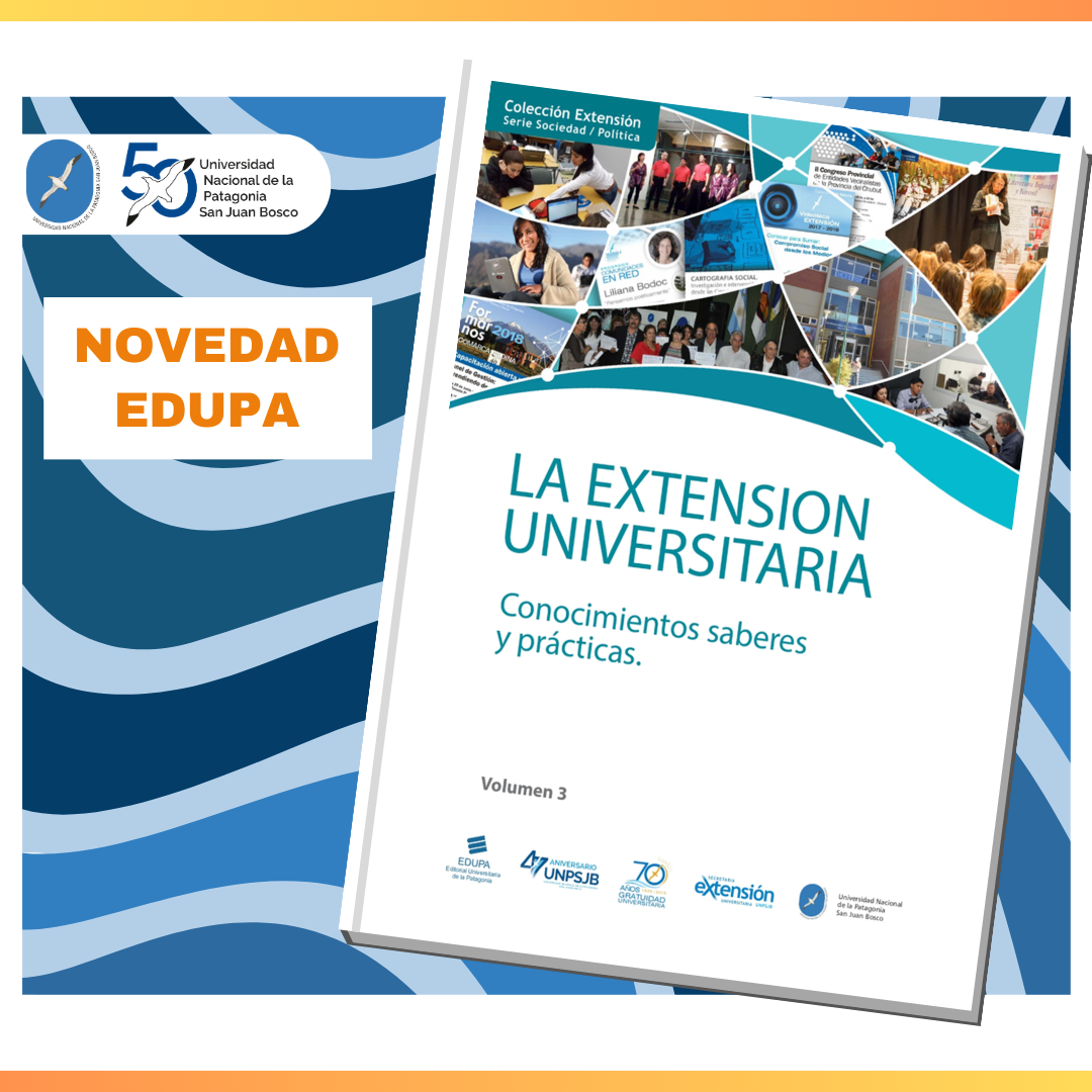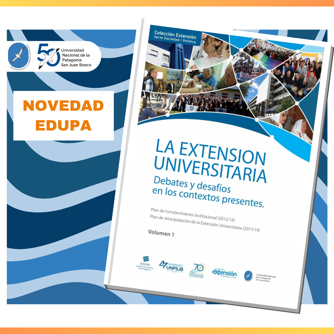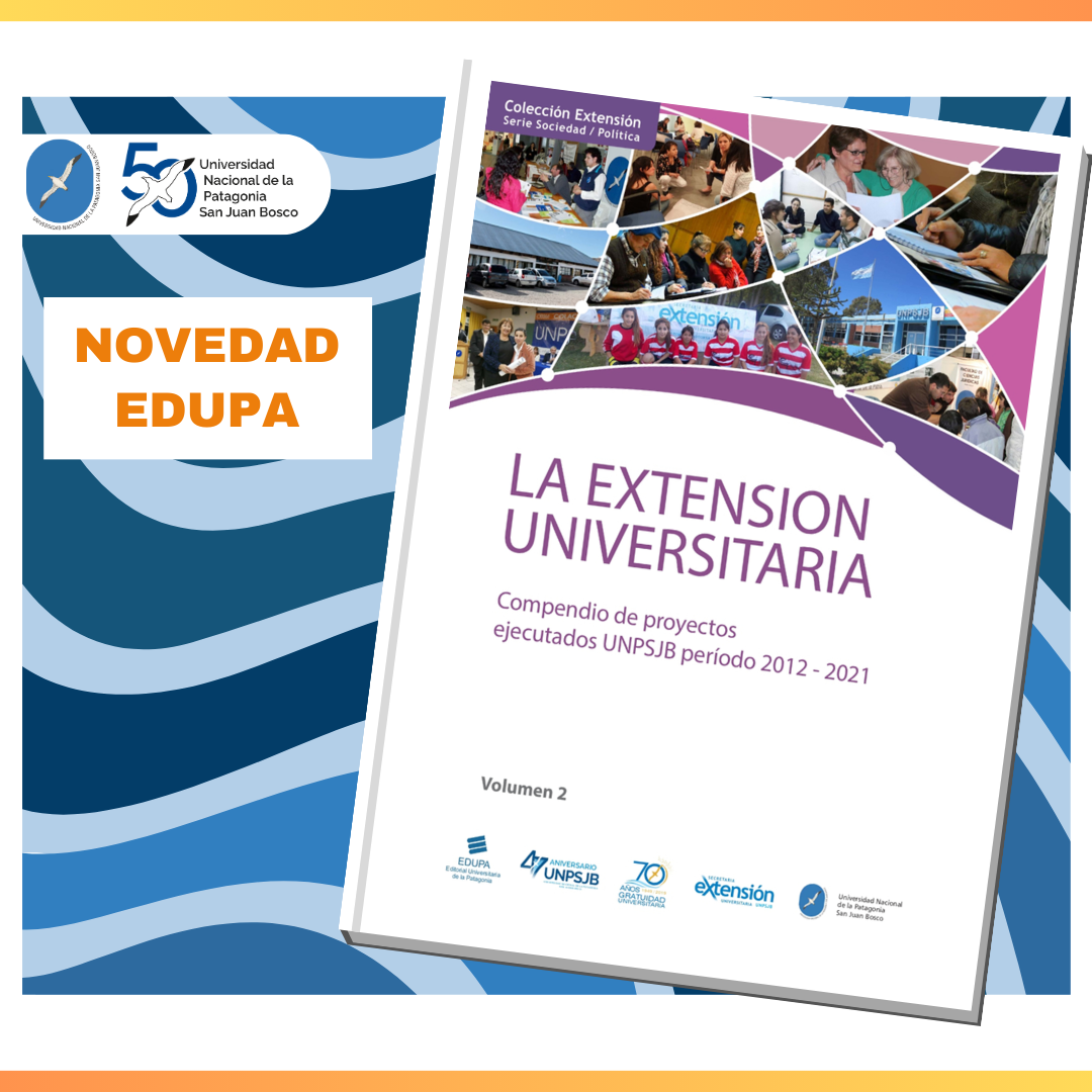 "La Extensión Universitaria en la UNPSJB" cuenta con cuatro volumenes. Compiladores: Diego Lazzarone, Jennifer Águila Levicoy, Enrique Escobar y Rocío Ramírez, integrantres de la Secretaria de Extensión de la UNPSJB.