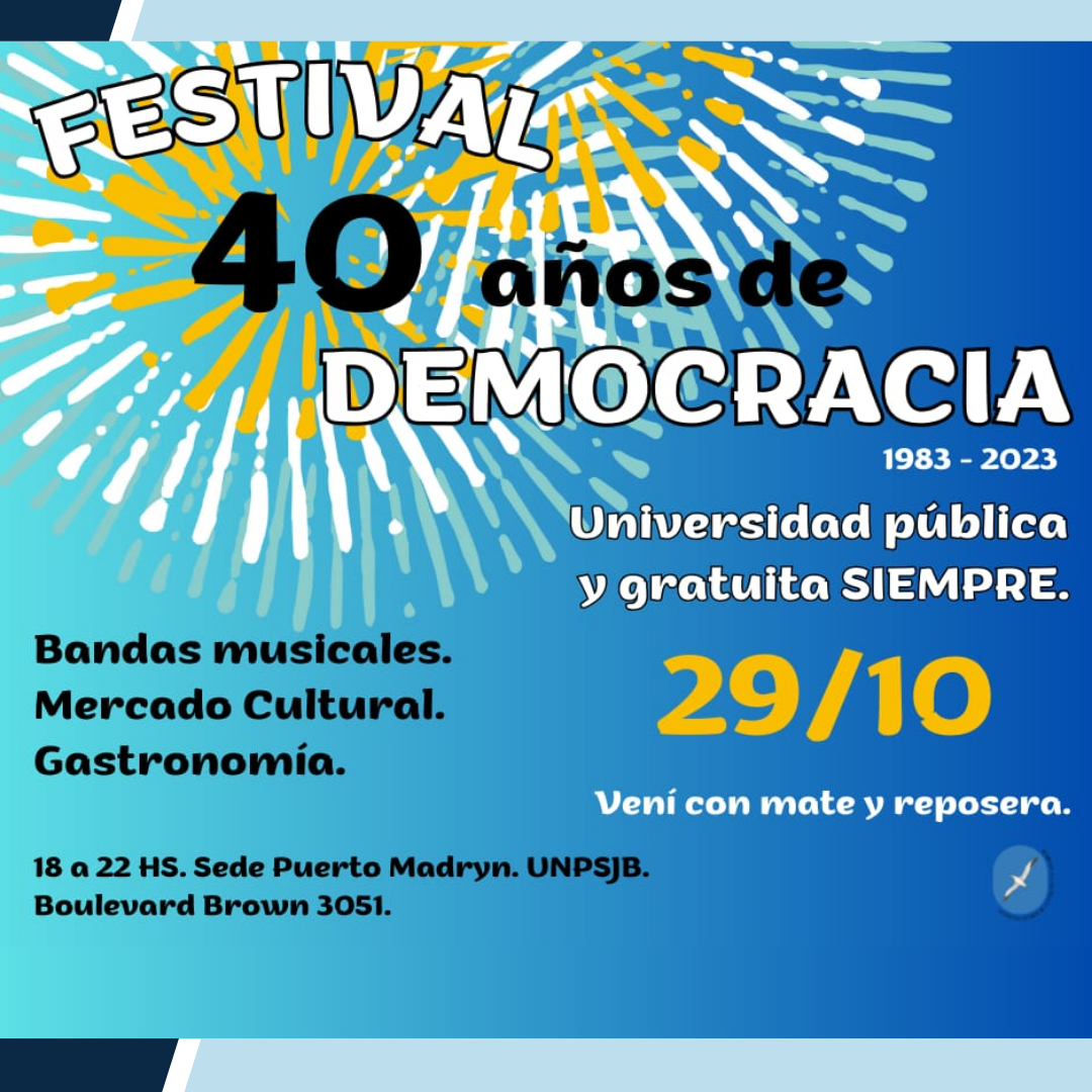 Puerto Madryn: Festival 40° años de Democracia Escrito en 28 Septiembre 2023. | Publicado en Puerto Madryn Leer más