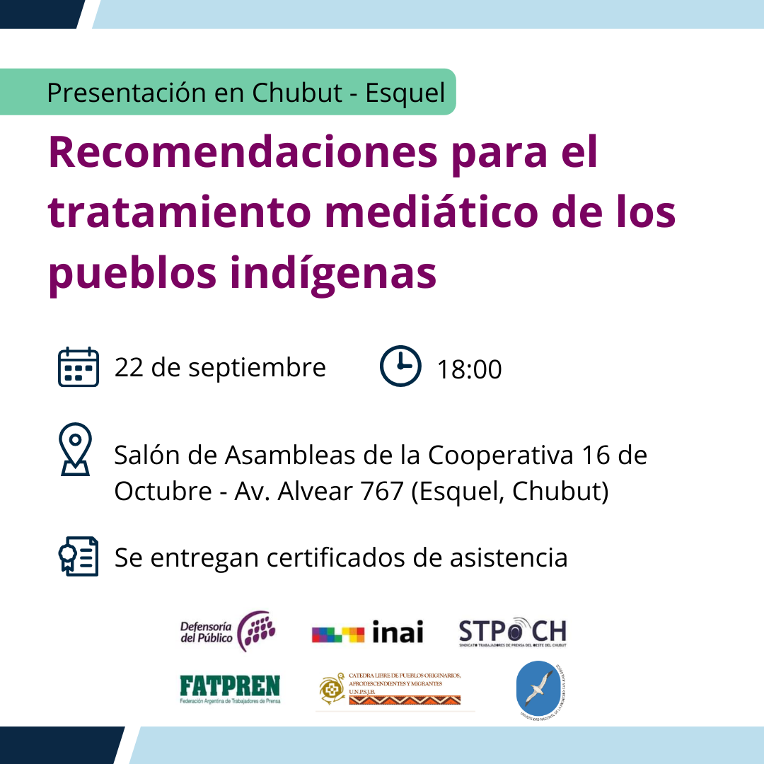 Tratamiento mediático de los Pueblos Indígenas Escrito en 08 Septiembre 2023. | Publicado en Esquel Leer más