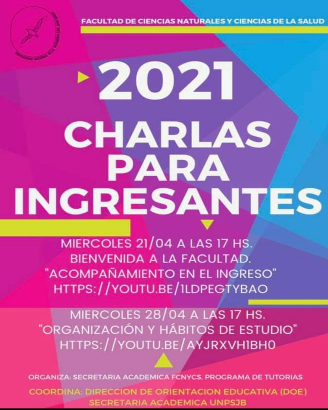La Dirección de Orientación Educativa (DOE) dependiente de Secretaría Académica de la UNPSJB, agradece a la Facultad de Ciencias Naturales y Ciencias de la Salud, al Programa de Tutorías y a los Tutores por su participación en el Taller “TUTORÍAS 20-21 DESAFÍOS EN EL ACOMPAÑAMIENTO VIRTUAL”.