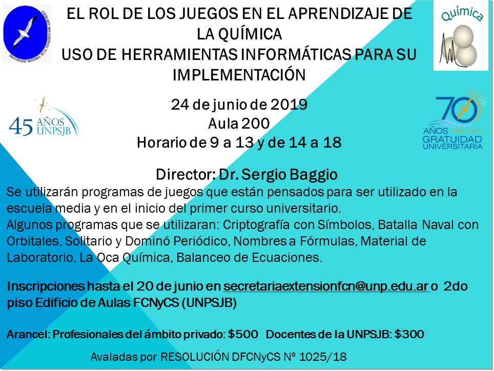 Hasta el 20 de junio se podrán inscribir los docentes interesados en participar de la capacitación: "El rol de los juegos en el aprendizaje de la química. Uso de herramientas informáticas para su implementacion".