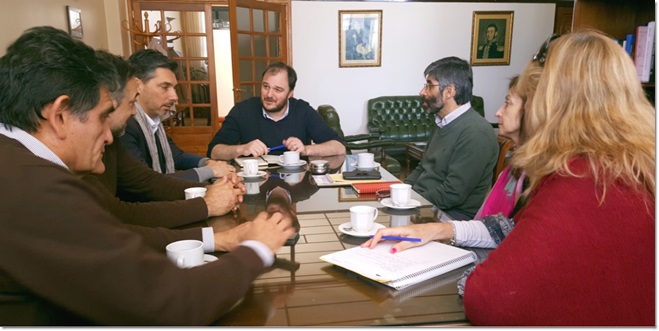 El Rector de la Universidad Nacional de la Patagonia San Juan Bosco, Carlos De Marziani, recibió en su despacho al Gerente de Capacitación y Desarrollo de Vialidad Nacional, Javier Barba, y al Asesor, Gustavo Cóppola, quienes estuvieron acompañados, por la Delegada de la Facultad de Ingeniería de la ciudad de Trelew, Leda Cotti de la Lastra, el director de LABIEVI de la misma Facultad, Oscar Moreno y el Decano de la Facultad de Ingeniería, Francisco Carabelli.