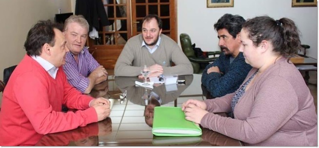 El rector de la Universidad Nacional de la Patagonia San Juan Bosco, Carlos De Marziani, y el Secretario de Extensión de Rectorado, Diego Lazzarone se reunieron con el Sr Intendente de Alto Río Senguer, Miguel López Gutiérrez, el Secretario de Gobierno, Jorge Barrera y la directora de Tierras, Roxana Jiménez.